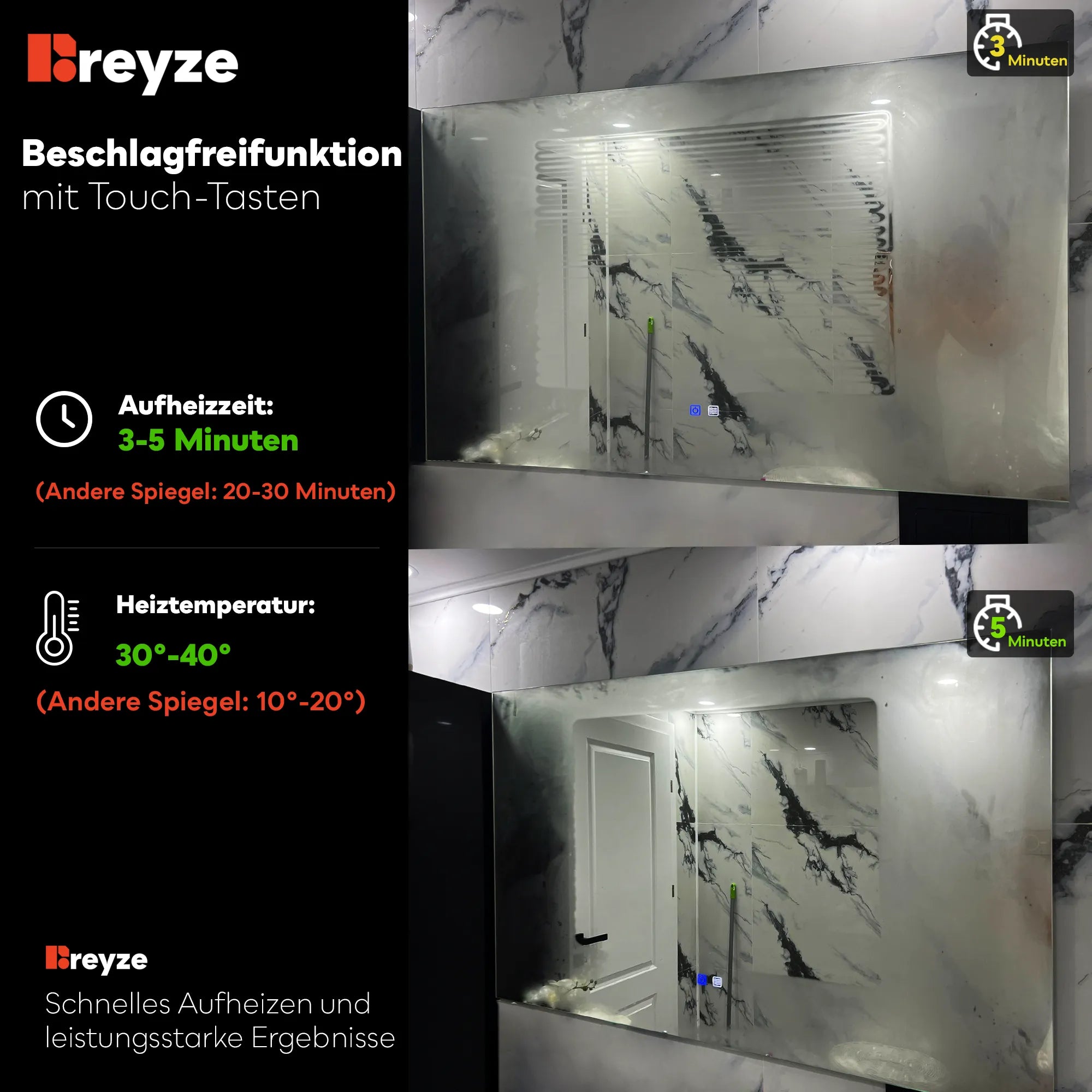 Steuern Sie Ihren LED-Spiegel intelligentTouch-Tasten-Funktion: JAEntnebelungsfunktion: JA Dual-Farb-Funktion: NEIN (Ausgewählte Option: Neutralweiß 4000K ) Intelligente Touch-Tasten bieten Ihnen die volle Kontrolle über Beleuchtung, Entnebelung und Farbtemperatur und sorgen für ein modernes und komfortables Erlebnis.